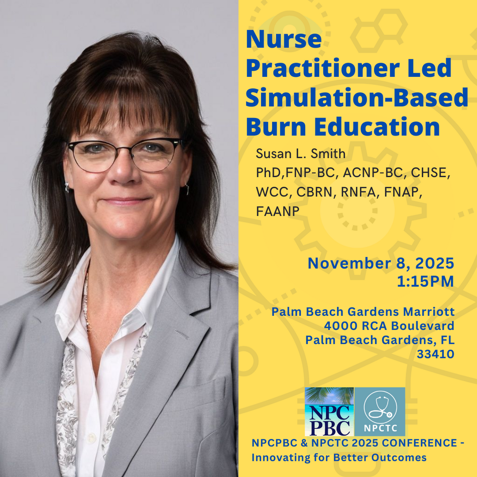 Please Join us at the upcoming conference for speaker Dr. Susan Smith and her lecture on Nurse Practitioner Led Simulation-Based Burn Education.